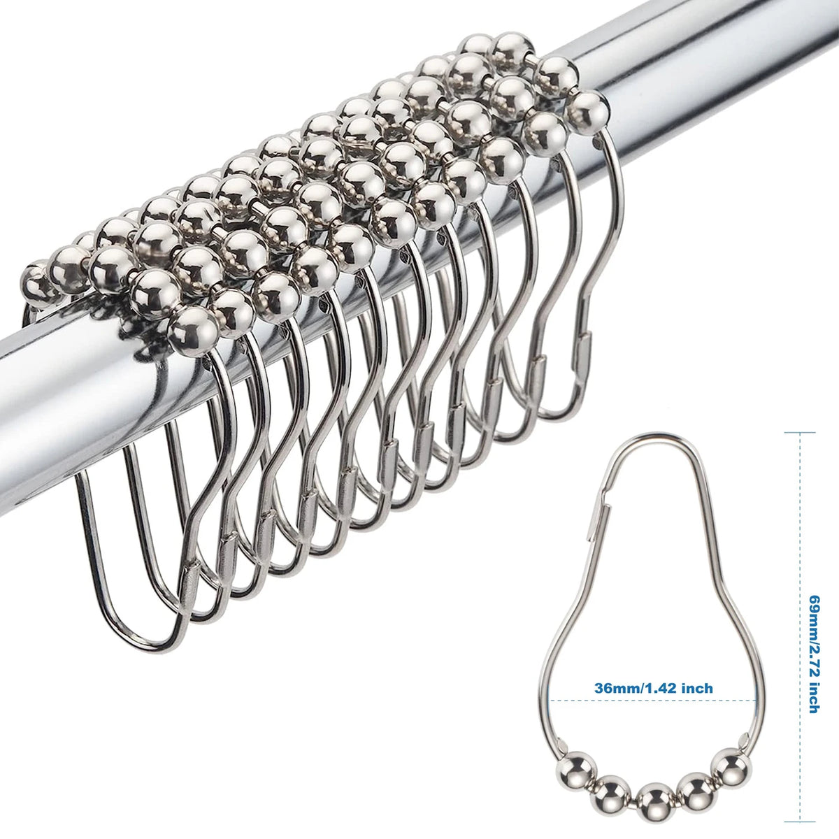 Luxury Linen Shower Curtain with Silver Metal Hooks, Waterproof Thick Fabric - Apricot / W150xH200cm